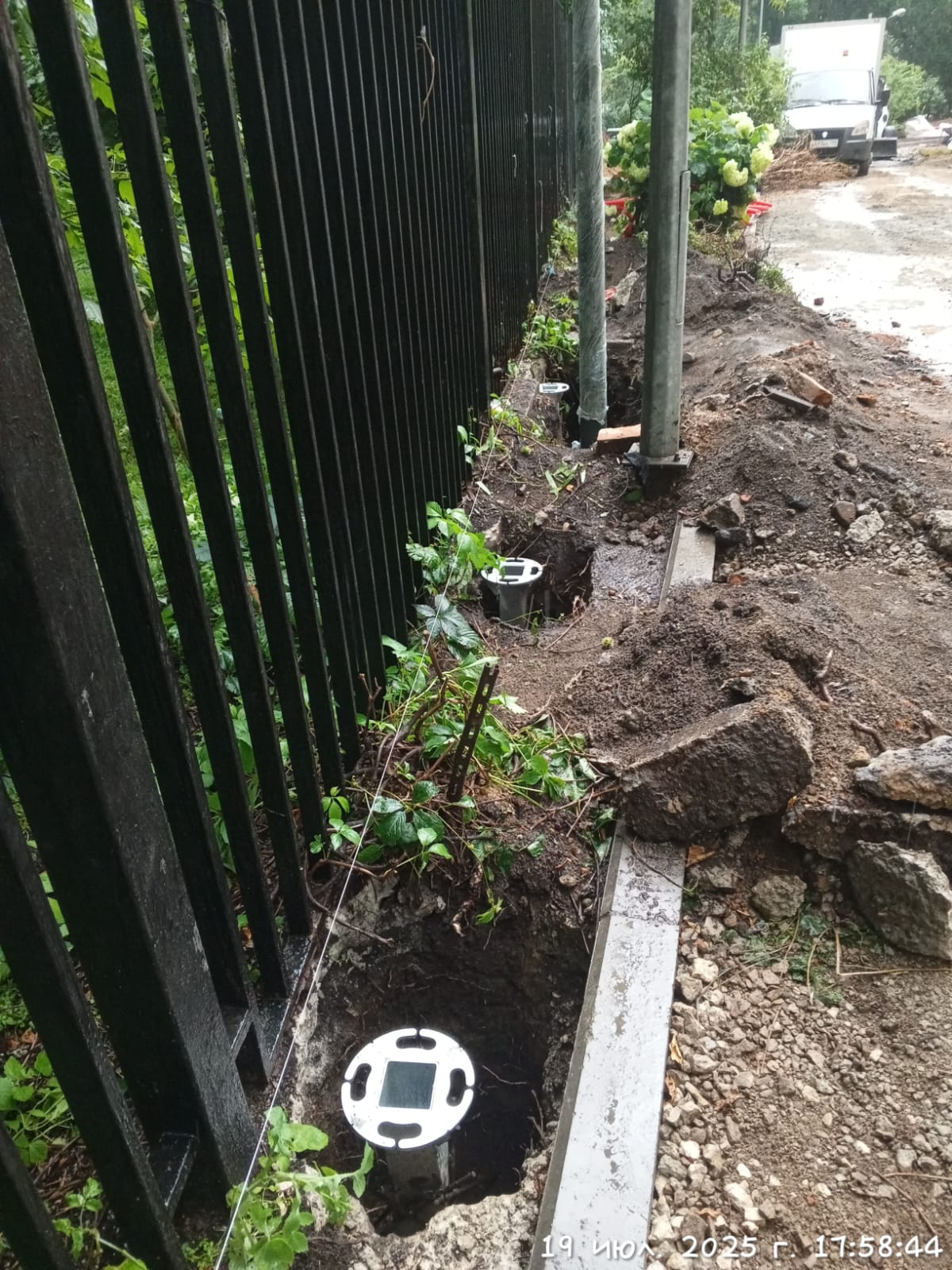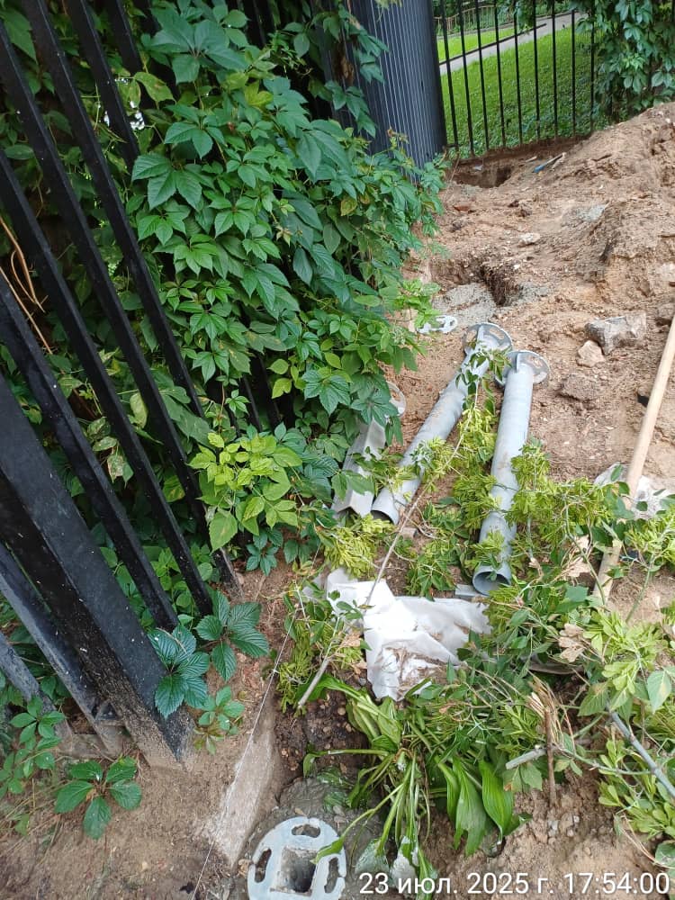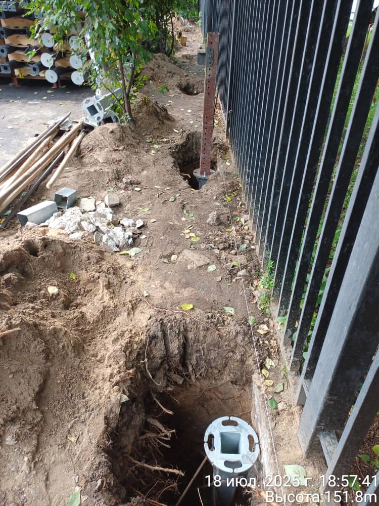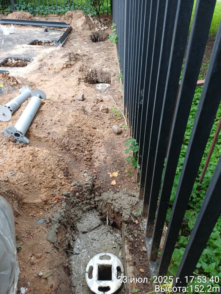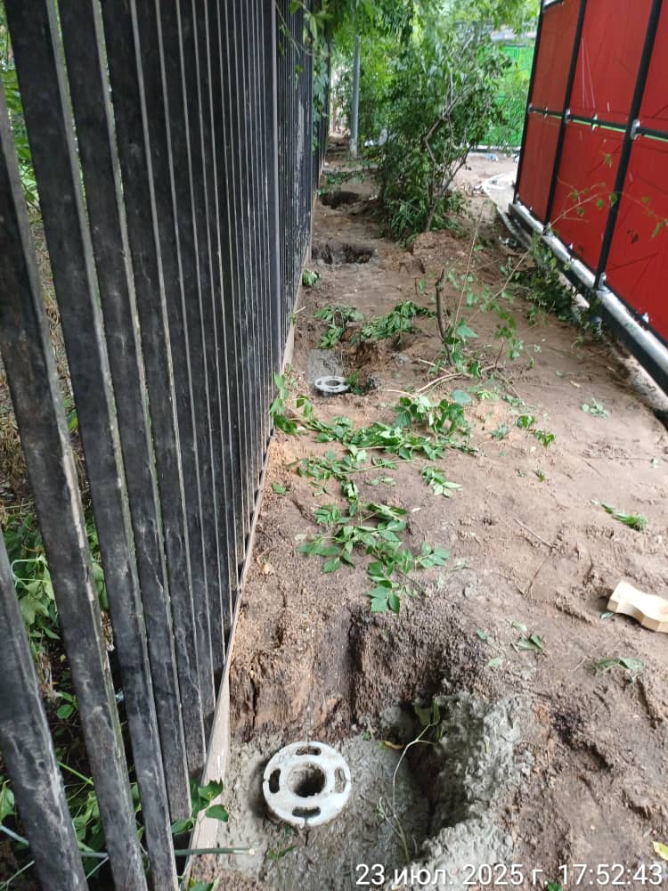 25.310 23.07.2025 Копка ям, установка закладных. Бетонирование закладных. (8 ям, 10 закладных, 7 чел.). ( 40 ям, 9 кубов) Дастан