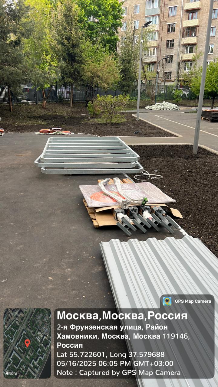 | 23.616 | 2-я Фрунзенская ул., д.10 | Завоз теневых навесов в количестве 2 шт. | Выполнена | Да | |||